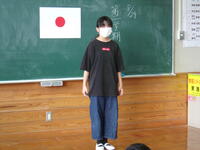換気と十分な間隔がとれる、上南摩小学校の良さを生かして、校歌を斉唱しました。