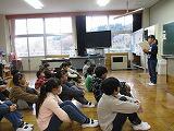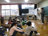 鳥の観察について話を聞いている時に、学校裏手の上空を「クマタカ」が飛んでいたのですが、見られたのは先生2人だけでした。気付いて校庭に移動したときには姿を消していました。子供たちは見られず残念でした。