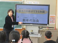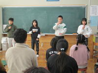 2校時終了後の全校集会は、今回も児童による司会進行で進められました。はじめの言葉や終わりの言葉と作文発表は、4年児童が行いました。「新年の抱負」の作文発表は、これから努力していきたいことを、自分の言葉で力強く述べていました。