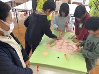 学年によって課題の文字が違うので、支援の先生が一人一人名前を書いて手本を準備してくださいました。年内に作品を仕上げられるので児童にとっては、冬休みの課題が一つ仕上がり一石二鳥です。