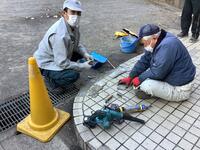 児童昇降口及び玄関前のタイルが、老朽化のため剥がれてしまいましたので、市の作業班の方に修繕していただきました。