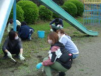 除草は保護者・職員と児童が主に分担し、草刈り及び剪定は地域の方と草刈り機を所有している保護者にお願いしました。
