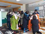 1月30日は、2校時から4校時が学校公開、5校時が授業参観、その後に学級懇談がありました。大勢の保護者や祖父母の皆様に参観いただきました。また、点字教室を3~6年生で実施し、3人のボランティアの方にお話を聞いたり点字を教えていただいたりしました。また、5・6年生は平安時代の貴族の衣装(十二単・束帯)の着付け体験もありました。着付けボランティアの方と保護者の方々にご協力いただきました。