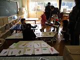 卒業おめでとう会の準備を1~5年生が進めています。今日は、3~5年生が一緒に、メッセージカードや掲示物等を作っていました。また、業間には、体育館で「くす玉」が割れるかどうかを確かめていました。なかなか割れずに苦労していました。