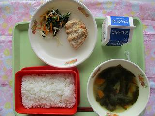 献立(牛乳・ごはん・みそ汁・鶏肉の香味焼き・和風和え)