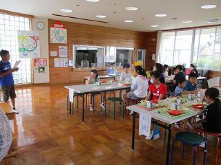 今週は「ふれあい給食」です。紅白チームで食べることで、運動会に向けての団結力を高める目的です。(9月2日の給食です。)