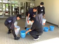 まず、稲作に適した黒土ほか数種類の市販の土を準備して、水とよく混ぜ、ドロ状にしていきました。