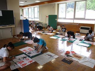 サマースクール1日目は、いつもお世話になっているボランティアの先生に習字を教えていただきました。授業中に練習したので、下野教育書道展に出品する作品の清書をしました。みんな真剣に取り組んでいました。ボランティアの先生には大変お世話になりました。