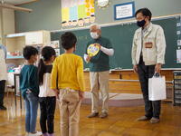 更に、この日は、南摩コミュニティ推進協議会副会長と所長が1年生にランチマットの贈呈をしてくださいました。