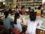 本校では、夏休みに入ってすぐに、サマースクールを開催しています。21日は習字・24日と25日は図工(絵・ポスター等)です。21日は、ボランティアの先生が教えてくださいました。今日は、担任以外の先生が指導にあたり、20名の児童が参加しました。自分が選んだ課題に取り組みました。画用紙に、どのように描いたらよいかを悩みながら、2時間じっくりと取り組んでいました。同時に、担任と保護者の方々との個人懇談も行っています。