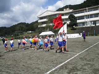 16日(土)に運動会が実施されました。台風による影響で、天候が心配されましたが、予定通りに実施できました。暑くなかったので熱中症の心配もなく全員元気に最後まで頑張っていました。子供たちは、ほとんどの種目に、全員で出場していました。子供たちが出ていないときは、保護者の綱引きや玉入れ、ドッジボール、来賓の福引きや地域の方との種目の時でした。保護者の方は子供たちが出ているときは準備や審判などの係の仕事をしてくださっていました。地域の方々も種目に参加しながら最後までご声援くださり、子供たちも励まされたことと思います。