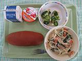 今日の給食は、「クリームスパゲティ、イタリアンサラダ、牛乳、くろパン、アセロラゼリーでした。給食の最初の時間に、お話CD「だんまりくらべ」を聞きながら食べました。食べ終わってからは、5・6年生3人のおすすめ本の紹介でした。事前にカードに記入した内容をわかりやすく話していました。