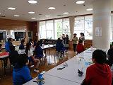 読書月間の最後の週になりました。1・2年生の教室では、ビブリオバトルをしていました。初めてなので、1・2年生にもできるやり方で、チャンプ本を決めていました。特に、紹介した本への質問が活発に出ていました。各教室には、必読書の「おすすめ本」コーナーがあります。読書した本を記録したカードはファイルに綴じて累積しています。今日の給食後は、3・4年生3人がおすすめ本の紹介をしました。