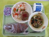 12月18日(月)の給食は、さつきランチ(特産物献立)は、モロみそカツ・キャベツのあえもの・かんぴょうのたまごとじ汁・ご飯・牛乳でした。健康委員会の児童からは、特にかんぴょうについての説明がありました。今日もおいしくいただきました。