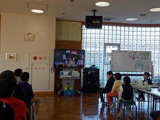12月15日(金)の給食後、ランチルームで「手洗いで病気を防ごう」というDVDをもとに、養護教諭から手洗いについての指導がありました。DVDは、「レクトくんリズムちゃんと考えるなぜなに?みんなの健康づくり」というタイトルで、栃木県が制作したので、とちまるくんが登場します。また、上南摩小の教室や校庭が舞台になっています。子供たちは、手洗いの歌を聞いたり、ばい菌の写真を見たりして、丁寧な洗い方を再確認しました。