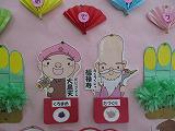 今日の業間は、保健室で身体測定でした。並んで待っている児童は、保健室入口に掲示してある「おせち料理」についての掲示物を熱心に見ていました。保健の先生が、七福神とおせち料理の写真を組み合わせた素敵な掲示物を作ってくださいました。おせち料理の写真をめくると、その料理に込められた願いなどが書かれていて、高学年の児童でも「初めて知った。」ことがたくさんあったそうです。