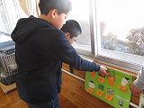 冬の体力づくりとして、なわとびを奨励しています。体育の授業だけでなく、休み時間にも練習している姿を見かけます。全員、「なわとび級別判定表」のカードを持っていて、自分の目標目指して練習しています。「名人」になると、昇降口の「なわとび名人」のボードに名前が貼られます。今のところ延べ3人の名前が貼られています。これから、多くの名人が誕生してほしいと思います。