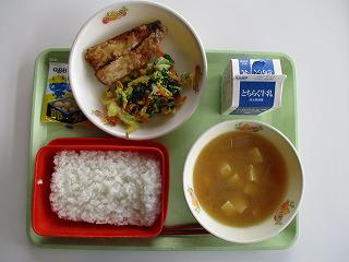 今日の給食は、さつきランチ(特産物献立)でした。「ごはん・牛乳・モロいそべフライ・ごまあえ・かんぴょうのみそ汁」が献立でした。