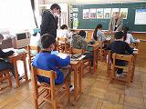 本校はノーチャイムですが、時間になると、校庭と校舎をつなぐ階段を上がって、清掃に向かいます。先週から、インフルエンザの影響で、給食や清掃は学級ごとに分かれてやっています。全校生が集まるのを避けて、インフルエンザの広がりを予防したところ、今週はインフルエンザでの欠席はなくなりました。1・2年生は、今日は自教室を清掃していました。3・4年生は階段やトイレを清掃していました。人数が少ないので、広い校舎を清掃するために、一人一人が、一生懸命に働いています。