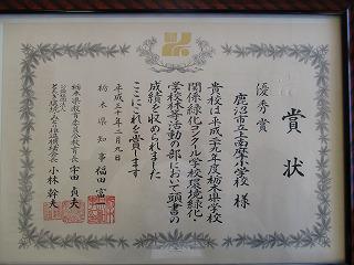 9日(金)、県総合文化センターで「環境とみどりの県民大会」が開催され、環境・緑化関係のコンクール入賞者等の表彰式がありました。本校からは、「県国土緑化運動・育樹運動標語コンクールで優良賞に選ばれた6年児童1名が表彰されました。また、本校が県学校関係緑化コンクールの学校関係緑化・学校林等活動の部で優秀賞として表彰され、賞状をいただきました。環境整備や森林環境学習では、保護者・地域・ボランティアの皆様には大変お世話になりました。
