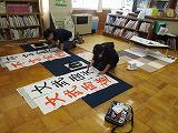 本校では、卒業式の会場に、卒業生の条幅と在校生の絵や習字等も展示します。そのための掲示用ボードも準備しました。昨年も準備しているので、「次、国旗をやりましょう。時間がかかるから。」などと話す子もいました。時間内に準備が終了しました。これで卒業式の練習がスタートできます。
