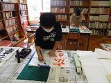 今日は、習字のボランティアの先生にご指導をいただいて、6年生が条幅に挑戦しました。これらの作品は、卒業式の会場に飾られます。6年生が自分で書きたい四字熟語を選ぶと、ボランティアの先生がお手本を一人一人に合わせて書いてくださったので、お手本を見ながら真剣に書いていました。小学校最後のりっぱな作品が完成しました。3~5年生も書き初め用の用紙に学年ごとに4文字の言葉を書きました。ボランティアの先生には、筆や下敷等の準備まで、大変お世話になりました。ありがとうございました。