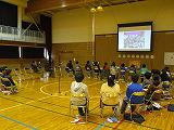 体育館にワックスを塗るために、全校生が、床をぞうきんで水拭きしました。普段は、モップを使っていて、ぞうきんで床を拭くことはありません。今日は、ぞうきんを絞り、全身を使っての水拭きは、大変よい運動になったようです。裸足になって、すごいスピードで拭いている子供たちもいました。1年生も一生懸命に何度も往復して頑張っていました。