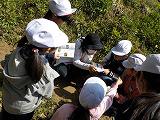 13日(金)の業間のクリーンタイムは植物観察でした。全校生で、本校で作製した「植物図鑑」を持って、学校南がわの山沿い付近に観察に行きました。1年生も上級生と一緒に熱心に観察していました。花や葉・茎を図鑑と見比べて、名前を調べ、見つけた植物にチェックしていました。