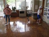 清掃の時間に1階では1年生が廊下をモップがけして、2年生がランチルームで掃除機をかけているのを見かけました。全校生が黙々と学校をきれいにしようとがんばっています。