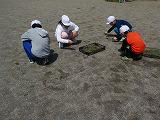 4時間目に5・6年生が、じゃがいもの芽かきをしていました。大きめの芽を残して、他の芽は根元から、かきとっていました。