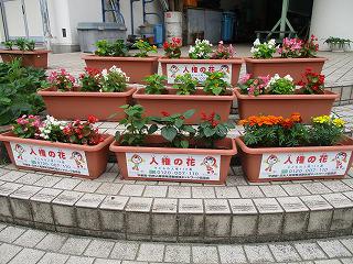 21日(木)の5校時に、「人権の花贈呈式」がありました。人権擁護委員・市担当者の3名が来校して全校生参加で行いました。6年生の2名が「人権の花」を受け取り、お礼の言葉を述べました。贈呈式の後、人権擁護委員さんと一緒に、プランターにマリーゴールド等の花を植えました。プランターは、ピロティに並べて記念写真を撮りました。これから、子供たちが世話をして、きれいな花を咲かせていきます。