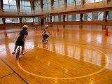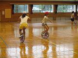 運動会のプログラムには、有志による「一輪車にのって」があります。今年は、8名の児童が挑戦します。今日は業間に、体育館で練習しました。まず、入場の仕方と2~3名のチームごとの演技をどうするかを考えながら、練習していました。どんな演技になるか楽しみです。