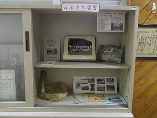 昨日、職員室の前の戸棚を活用して、「ふるさと学習コーナー」を作りました。昔の写真や子供たちが調べている「麻」などを展示しました。多くの人に見てもらいたいと思っています。