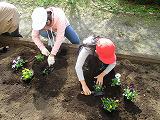 最初に、ボランティアの方に、苗の植え方を教えていただいた後に、それぞれの花壇に分かれて作業をしました。最後に、これからの世話が大切だという話を伺いました。美しいパンジーを優しい心で育てていくことと思います。