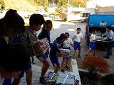 今日は、児童会によるリサイクルデーがありました。体育館に集めていた資源物を、高学年の児童が業者のトラックに積み込む作業をしました。1年間、学校の中で集めた古新聞やパンフレット・段ボール等が昨年以上に集まりました。体育館の玄関に出した後に、全員が一列に並んで、リレー形式で積み込みました。この収益は、児童会に入ります。高学年の児童が一生懸命働いてくれました。ご苦労様でした。