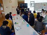 25日のリサイクルデーの後に、育成会の行事「親子ふれあいデー」が実施されました。保護者の方々は、ランチルームで「子供の写真撮影のポイント」についての講話をカメラマンの方からお聞きしました。保護者の皆さんから質問もたくさん出ました。講話の間、子供たちは、家庭科室に移動して、ビーズの工作をしていました。