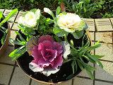 クリスマスも終わり、玄関の葉ボタンの鉢の飾りが、お正月バージョンに変わっていました。