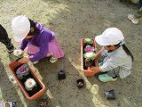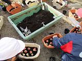 今年も「ゴルファー等による緑化推進協力事業」で球根や葉ボタンをいただきました。今日の業間に、全校生で、プランターに植える作業をしました。1~3年生は、葉ボタン3本とクロッカスの球根10個を一つのプランターに植えました。土の入れ方をボランティアの方に教えていただきました。4~6年生は、チューリップとムスカリの球根を5個ずつプランターに植えました。春になって芽を出してきれいな花が咲くのが楽しみです。