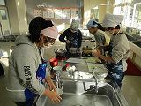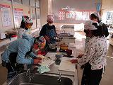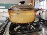 今日は、高学年が、調理実習をしていました。ごはんとみそ汁の実習です。ごはんは教科書と同じように、鍋を使って炊いていました。時間や味を食べ比べるために、炊飯器でも炊いているそうです。みそ汁は、豆腐・ねぎ・大根・油揚げと具だくさんでした。煮干しでだしを取っている間に、いい香りがしていました。みんなで仕事を分担し、協力して調理していました。出来上がると、さっそく試食をしていました。給食を食べた後でしたが、おいしそうに食べていました。
