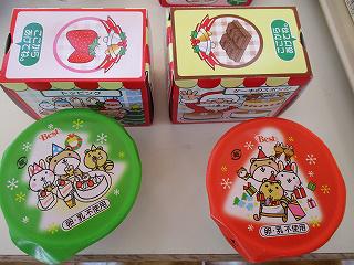 今日の給食は、ちょっと早い「クリスマス献立」でした。セレクトデザートは、チョコケーキといちごケーキとカップデザートの3種類でした。子供たちに一番人気があったのはチョコケーキでした。