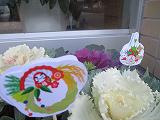 クリスマスも終わり、玄関の葉ボタンの鉢の飾りが、お正月バージョンに変わっていました。