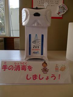 インフルエンザが栃木県内でも流行していますが、本校でも、手洗い・うがい等の励行に努めています。今までは、ランチルームの入口で、押すとアルコールが出てくるスプレー式ものを使って手指の消毒をしていました。しかし、今は、自動で消毒できるものを使っています。これなら、どこにも触れずに消毒できます。みんな喜んで使っています。