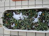 (職員玄関の外にあるプランターには、土曜日の雪が水曜日まで残っていました。本校の校舎の裏側(駐車場)は日陰になっていて、雪が降ると、なかなか溶けずに凍ってしまいます。土曜日の雪が日曜日の午後まで残っていたので、雪かきをしました。鹿沼で雪かきをしたところは珍しいのではないかと思います。)
