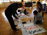 今日は、ボランティアの先生による習字の授業がありました。6年生は、卒業式に飾る条幅に挑戦しました。書く文字は自分で決めました。3~5年生は書き初め用の用紙に書きました。今日の作品は卒業式の会場に展示することになっています。太い筆で、いつもより大きな用紙に、力いっぱい書いていました。