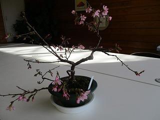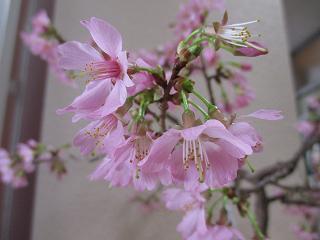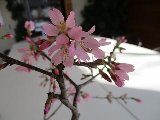 校長室に「おかめ桜」の植木鉢があります。昨日から、つぼみが膨らんで花が咲きそうでしたが、今朝、きれいに咲き始めました。ピンクの花びらが、とても可愛らしいです。子供たちにも見てもらいたくて、給食が食べ終わったランチルームに持っていったところ、子供たちが拍手してくれました。桜も喜んだことと思います。