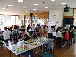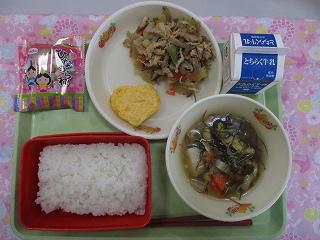 今日から2つの週間が始まります。卒業おめでとう給食週間では、6年生を囲んで、いろいろなグルーブで食べます。今日は、誕生日ごとに別れて食べます。献立は、「かるちゃんランチ」でした。(牛乳・ごはん・さばのみそに・しおこんぶあえ・いなかじる)