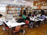水曜日の朝、3~6年生は、新聞スクラップの時間です。今日も図書室に集まってきたら、新聞の記事を選んで、ワークシートに貼り、自分の考えを書くという手順通りに活動していました。