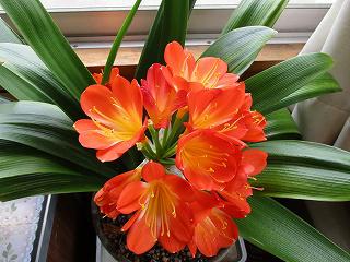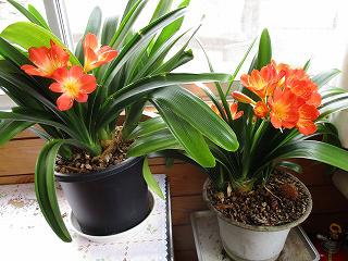 (昨年、株分けした「君子蘭」がきれいに咲いています。)