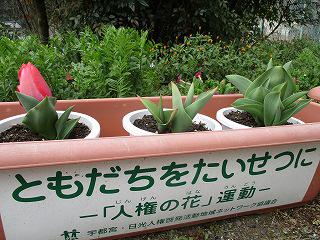 学校は22日の修了式が終わり、春休みになっています。今日の学校は静かでした。教職員が年度末の事務をしています。花壇等で、花が美しく咲いています。特にスイセンがきれいです。