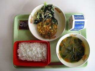「牛乳・ごはん・かきあげ・のりあえ・みそしる」